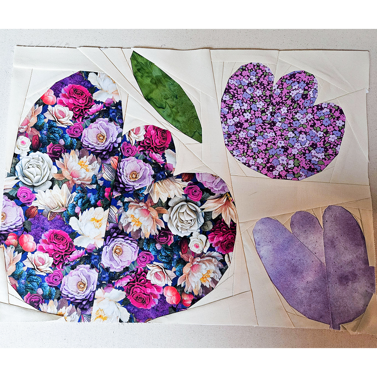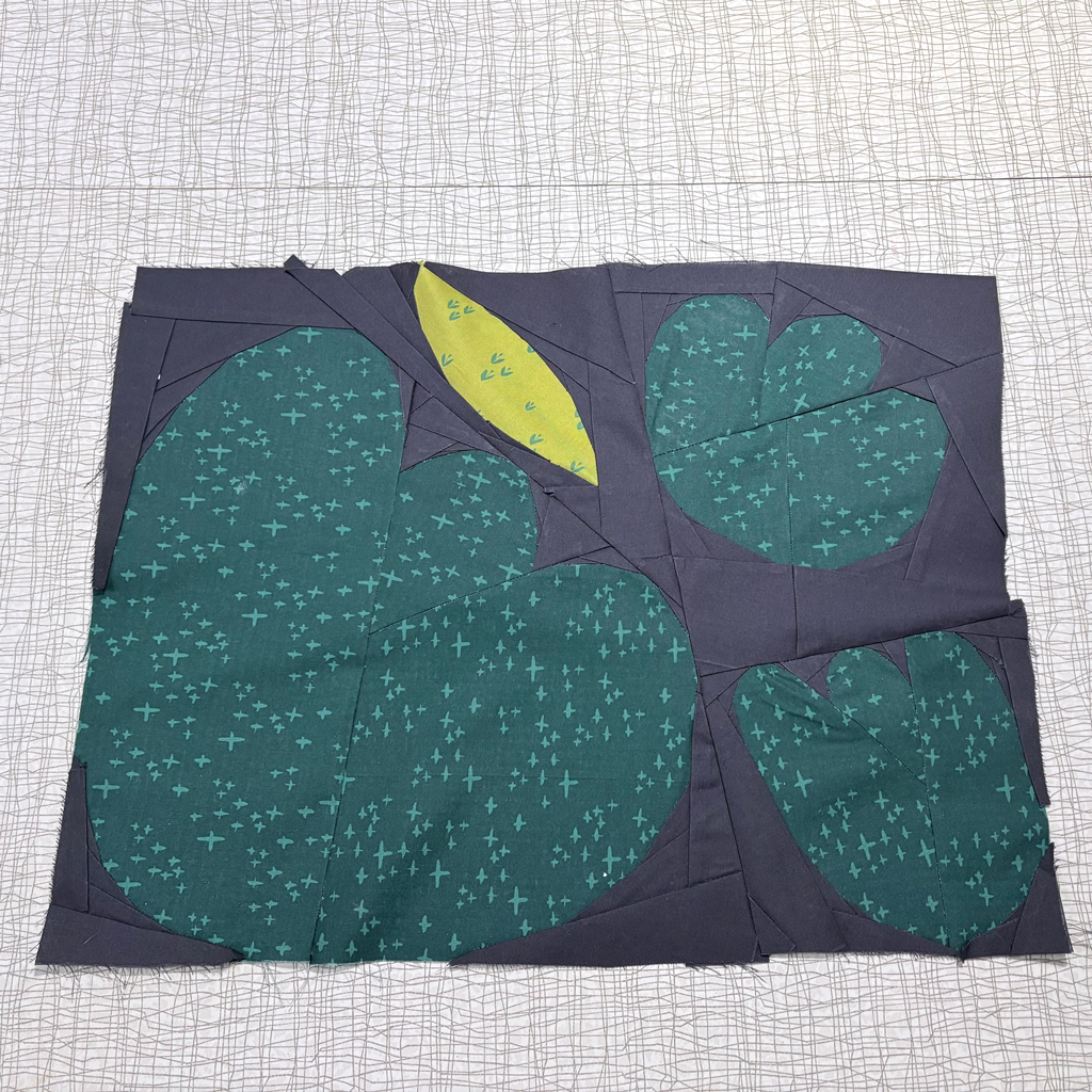 To make sure your fabric is large enough to cover your sections, I suggest cutting and labeling fabric according to the cutting diagrams. This not only streamlines the process but also eliminates guesswork when piecing.
